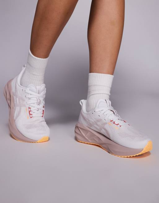 Asics – Novablast 5 – Laufschuhe in Weiß und Staubrosa