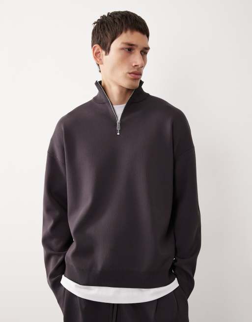 ASOS COLLECTIVE – Trainingsoberteil aus Strick in Anthrazit mit kurzem Reißverschluss, Kombiteil