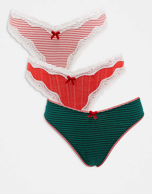ASOS DESIGN – 3er-Pack in grün und rot gestreift mit hohem Beinausschnitt