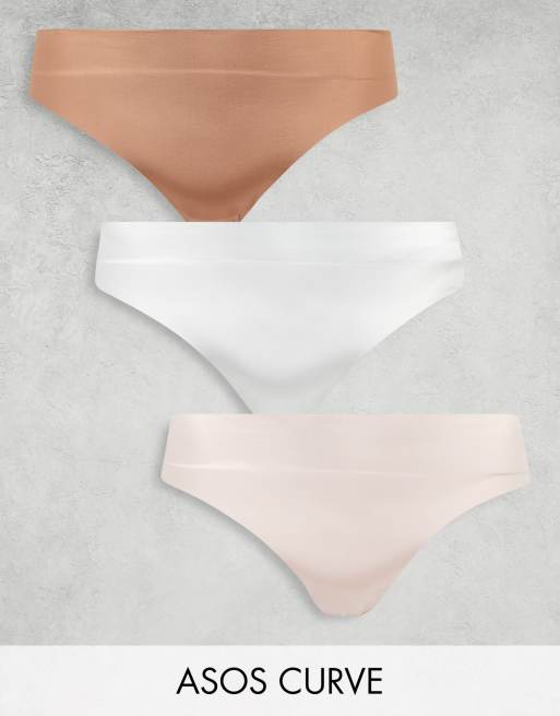 ASOS DESIGN Curve – 3er-Pack Strings aus sich nicht abzeichnendem Stoff und Spitze in tonalen Tönen
