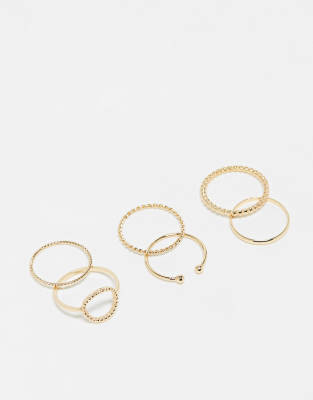 ASOS DESIGN Curve – 6er-Pack goldfarbene Ringe mit offenem, kreisförmigem Detail