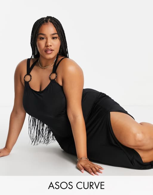 ASOS DESIGN Curve – Anschmiegsames Maxi-Strandkleid mit Ringverzierung