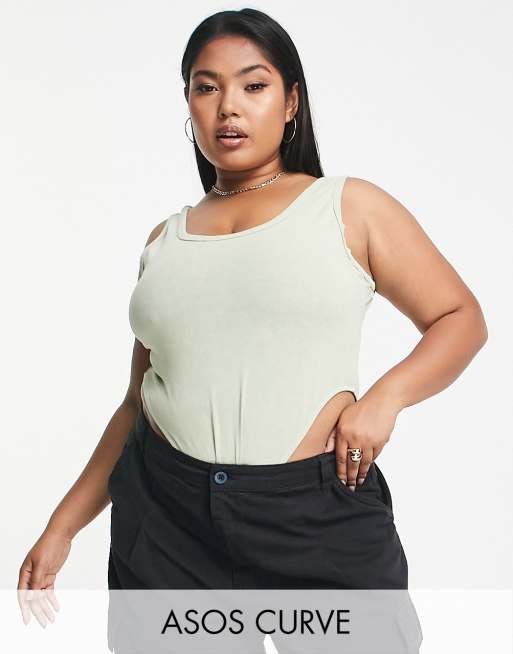 ASOS DESIGN Curve – Ärmelloser Body in verwaschenem Limettengrün