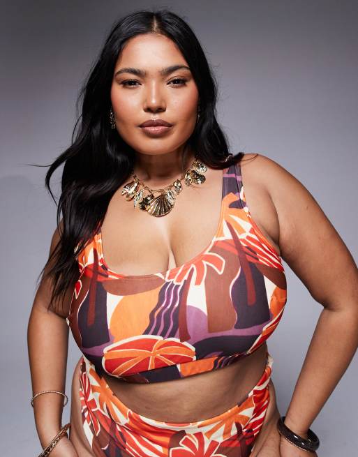 ASOS DESIGN Curve – Ava – Cropped-Bikinioberteil mit tropischem Print