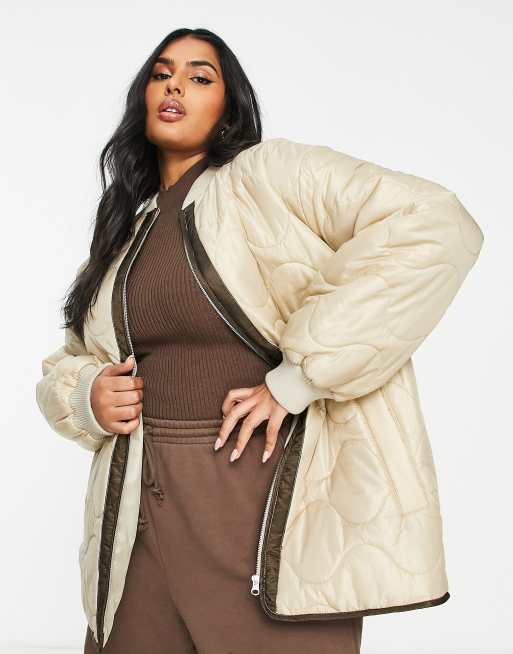 ASOS DESIGN Curve – Bomberjacke in Kamelbraun mit Zwiebelsteppmuster
