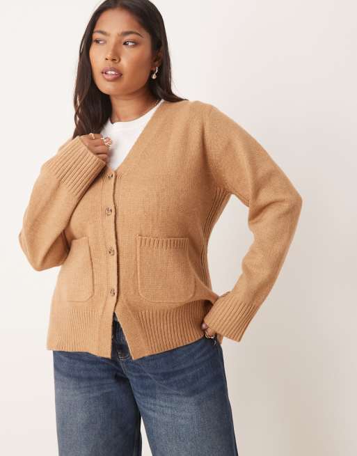 ASOS DESIGN Curve – Boyfriend-Strickjacke in A-Linie in Biscuit-Braun mit Taschendetail