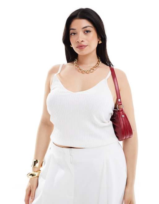ASOS DESIGN Curve – Camisole aus Strick in Cremeweiß mit V-Ausschnitt