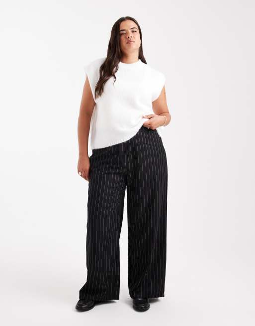 ASOS DESIGN Curve – Elegante Hose in Schwarz mit Nadelstreifen und lockerem, geradem Schnitt