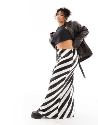 ASOS DESIGN Curve – Gestreifter Maxirock aus Satin-Twill in Schwarz-Weiß
