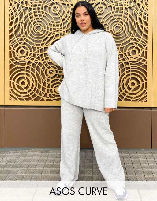 ASOS DESIGN Curve – Gestrickter Oversized Kapuzenpullover in Kalkgrau, Kombiteil
