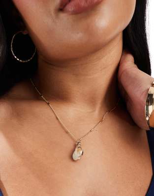 ASOS DESIGN Curve – Goldfarbene Halskette mit Stabdesign und Kunstmuschelanhänger
