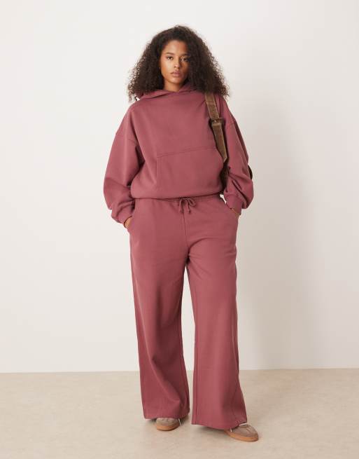 ASOS DESIGN Curve – Hochwertige, schwere Jogginghose in Dunkelrosa mit Ziernähten und weitem Bein, 500 g/m²