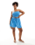 ASOS DESIGN Curve – Isabel – Mix and Match – Trägerloses, gesmoktes Strandoberteil in blauer Leinenoptik