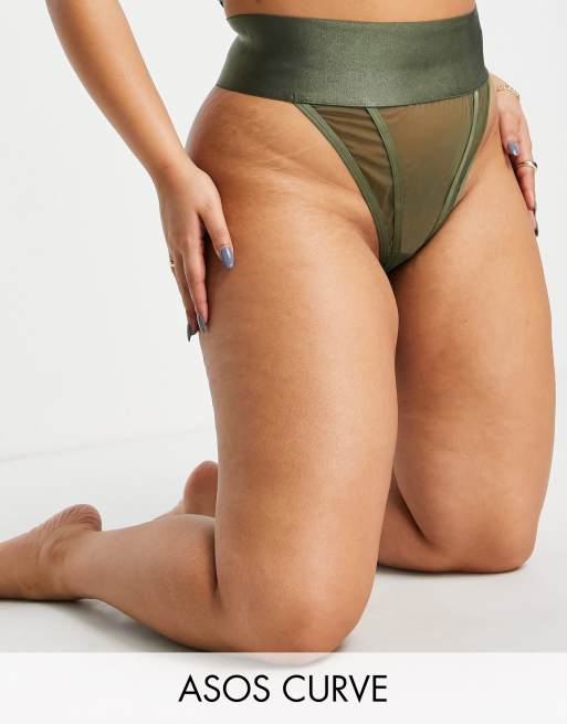 ASOS DESIGN Curve – Jayde – Tanga mit Netzstoffnähten in Khaki