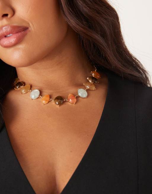 ASOS DESIGN Curve – Kurze, goldfarbene Halskette mit eingefassten Schmucksteinen