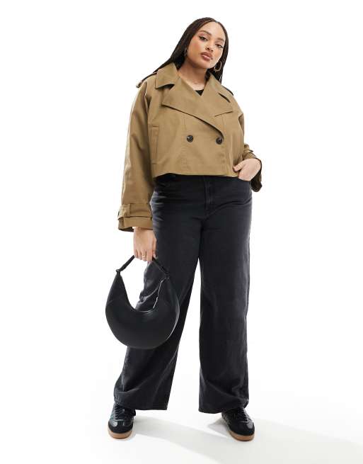 ASOS DESIGN Curve – Kurzer Trenchcoat in Olivgrün
