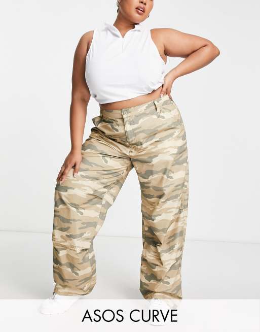 ASOS DESIGN Curve – Locker geschnittene Cargohose in Braun mit Military-Muster