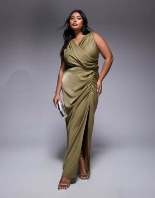ASOS DESIGN Curve – Maxikleid in Hellgrün mit drapierter Vorderseite und Schlitzdetail