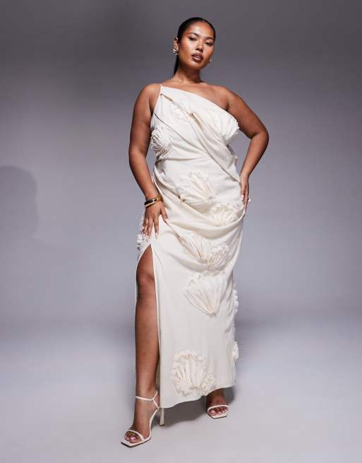ASOS DESIGN Curve – Maxikleid in Natur mit Strukturdesign und Blumenapplikationen