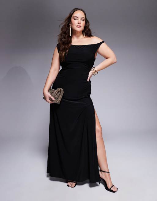 ASOS DESIGN Curve – Maxikleid in Schwarz mit verdrehter Schulterpartie und geschnürter Rückseite