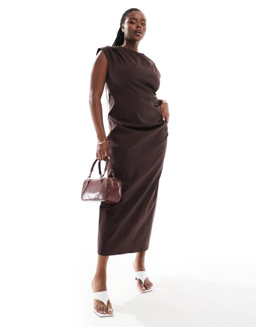 ASOS DESIGN Curve – Midikleid in Braun mit Drapierung