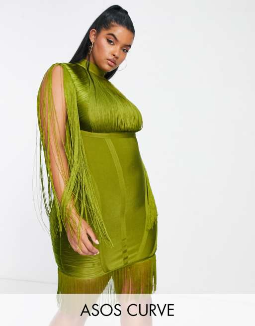 ASOS DESIGN Curve – Minikleid mit Fransen in Khaki