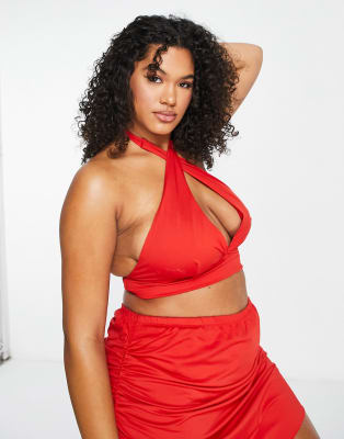 ASOS DESIGN Curve – Neckholder-Bikini in Rot mit breitem Unterbrustband
