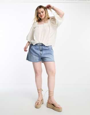 ASOS DESIGN Curve – Oberteil aus strukturiertem Gaze-Stoff in Weiß mit eckigem Ausschnitt und voluminösen Ärmeln