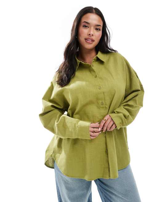 ASOS DESIGN Curve – Oversize-Hemd in Leinenoptik in Olivgrün