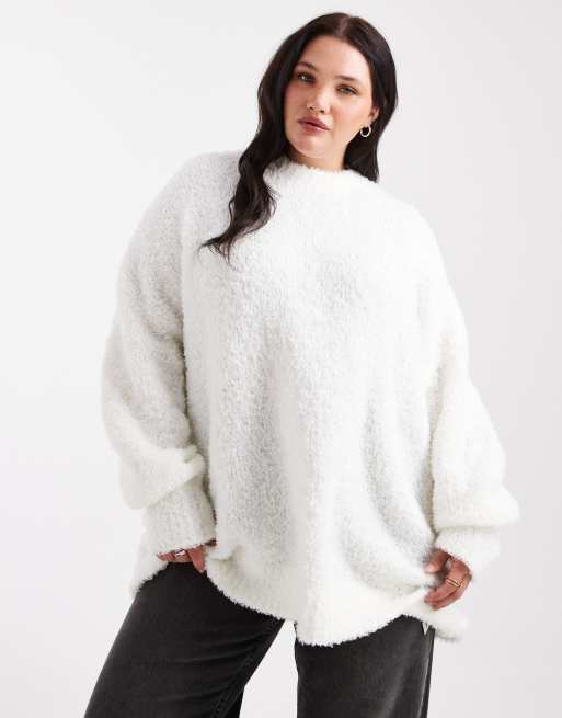 ASOS DESIGN Curve – Oversize-Pullover aus Bouclé in Creme mit abgerundetem Saum