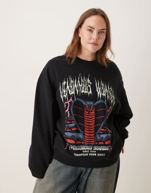 ASOS DESIGN Curve – Oversize-Sweatshirt in Schwarz mit Schlangenmotiv im Rock-Design