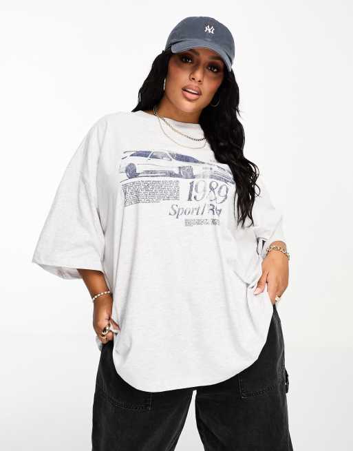 ASOS DESIGN Curve – Oversize-T-Shirt in eisgrau meliert mit Motorcross-Grafikprint