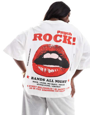 ASOS DESIGN Curve – Oversize-T-Shirt in Weiß mit „Psych Rock!“-Lippengrafik