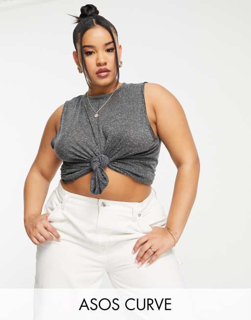 ASOS DESIGN Curve – Oversize-Trägertop aus Leinenmischgewebe in Anthrazit