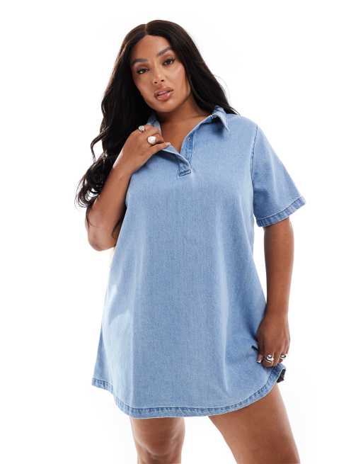 ASOS DESIGN Curve – Polo-Jeanskleid in Mittelblau