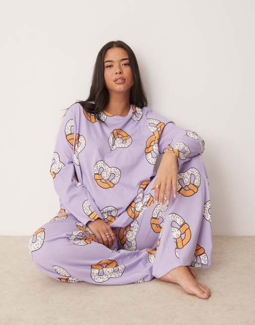 ASOS DESIGN Curve – Pretzel – Pyjama aus langärmligem Oberteil und Hose in Flieder