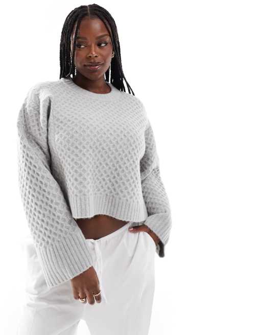 ASOS DESIGN Curve – Pullover in Grau mit Zopfmuster, Rundhalsausschnitt und breiten Bündchen