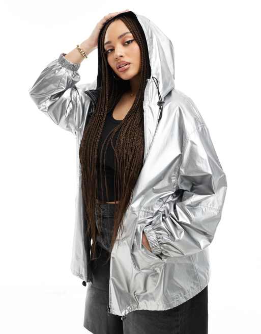 ASOS DESIGN Curve – Regen-Bomberjacke in Metallic-Silber