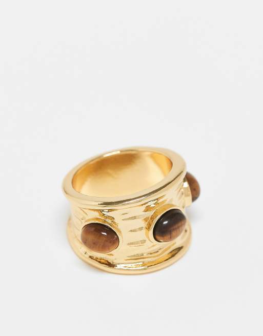ASOS DESIGN Curve – Ring mit echten Tigerauge-Halbedelsteinen und 14-Karat-Vergoldung