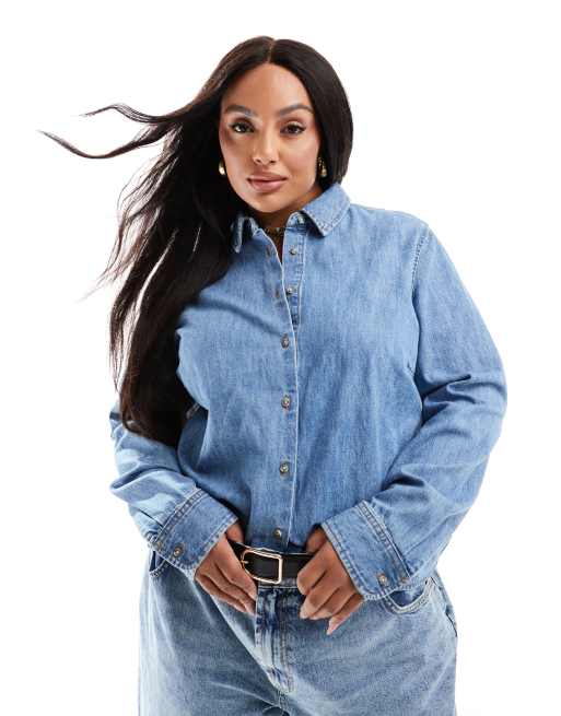 ASOS DESIGN Curve – Schlichtes Jeanshemd in verwaschenem Mittelblau