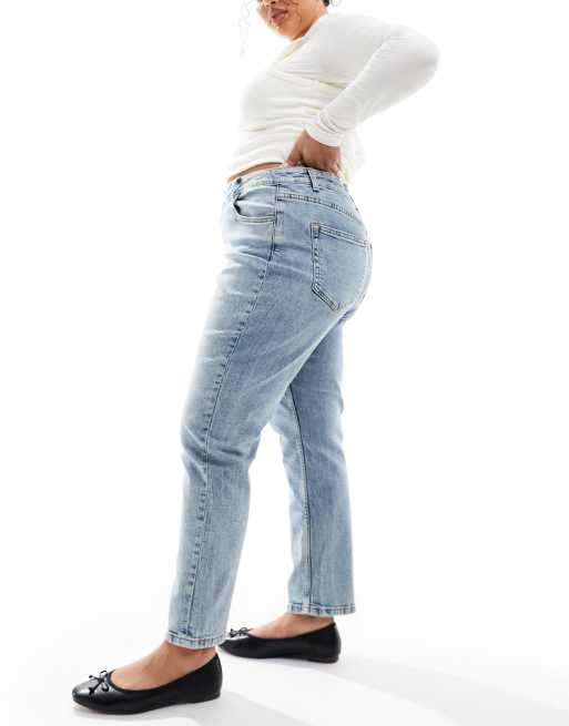 ASOS DESIGN Curve – Schmal geschnittene Mom-Jeans in Mittelblau