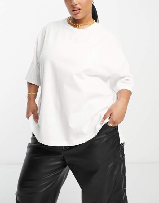 ASOS DESIGN Curve – Schweres Oversize-T-Shirt in Weiß mit Seitenschlitzen