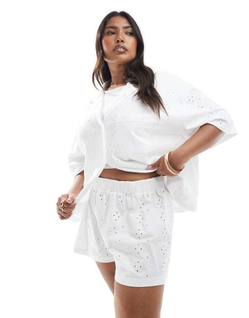 ASOS DESIGN Curve – Set in Weiß mit Lochmuster