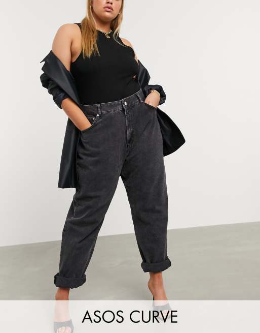 ASOS DESIGN Curve – Slouchy – Hoch geschnittene, lockere Mom-Jeans in verwaschenem Schwarz