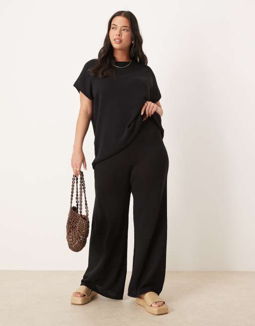ASOS DESIGN Curve – Strukturierte Hose aus Strick in Schwarz, Kombiteil