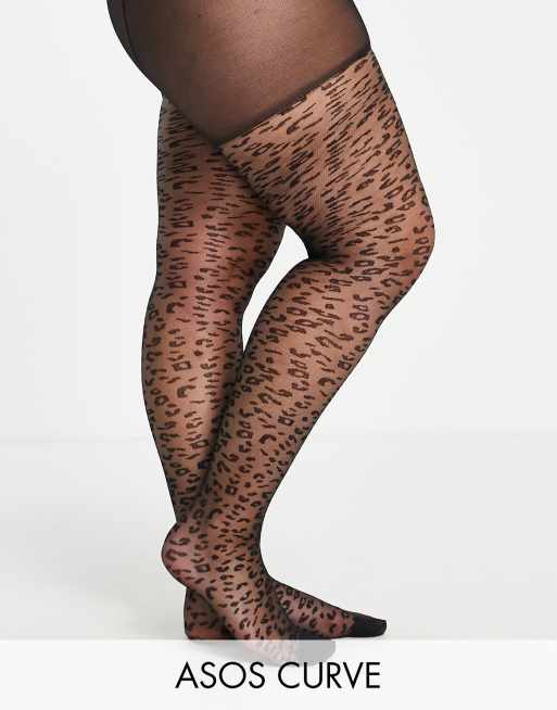 ASOS DESIGN Curve – Strumpfhose in Schwarz mit Leopardenmuster