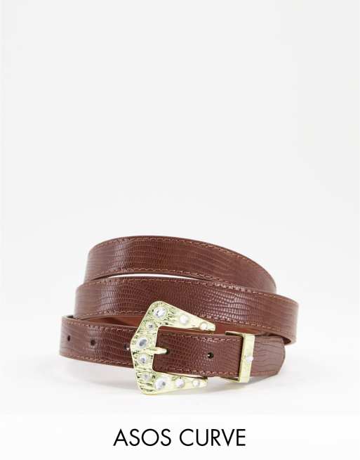 ASOS DESIGN Curve – Taillen- und Hüft-Jeansgürtel in Braun mit verzierter Schnalle