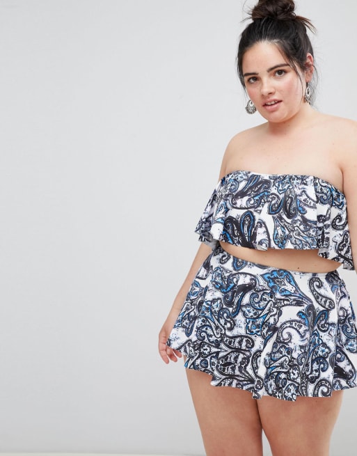 ASOS DESIGN Curve – Trägerloser Bikini mit fließendem Design und Rokoko-Print