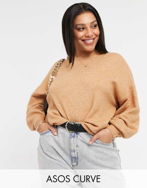 ASOS DESIGN Curve – Übergroßer Pullover mit Rundhalsausschnitt in Camel