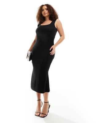 ASOS DESIGN Curve – Weiches Midikleid in Schwarz mit eckigem Ausschnitt